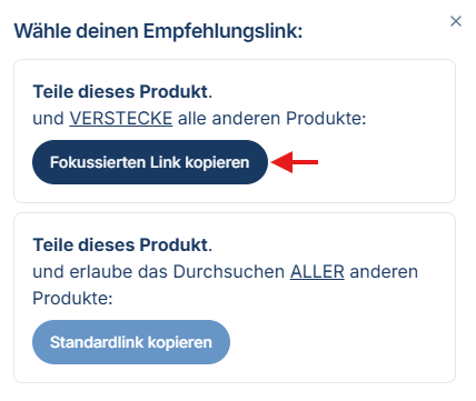 - Klick auf die Schaltfläche „Mit Empfehlungslink teilen” auf der Produktseite.