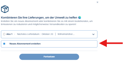 Wichtig: Wenn du bereits ein aktives Abo hast und ein neues beginnen möchtest, musst du die Option Neues Abo erstellen wählen. Wenn du jedoch einfach nur weitere Produkte zu deinem bestehenden Abo hinzufügen möchtest, klicke hier, um zu erfahren, wie das geht.