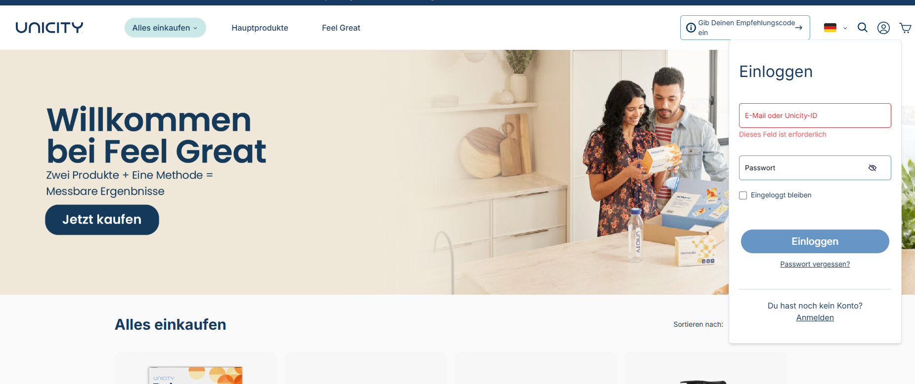 Logge dich in dein Unicity Konto ein.