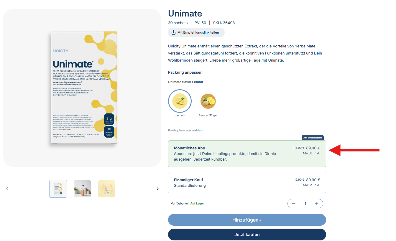 Du möchtest weitere Unicity Produkte zu deinem Abo hinzufügen? Das geht ganz einfach über dein Unicity Konto. So geht's: