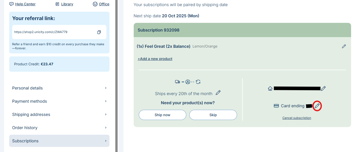 Updating your payment method is quick and easy through your Unicity account. Follow the steps below to add a new credit card to your active subscription.