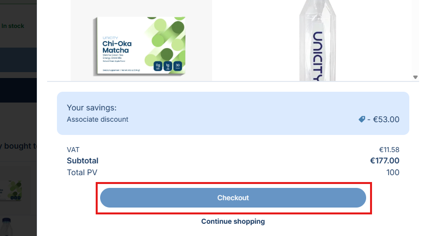 If you wish to proceed to checkout, click on “Checkout.” If you wish to continue browsing other products, click on “Continue Shopping.”