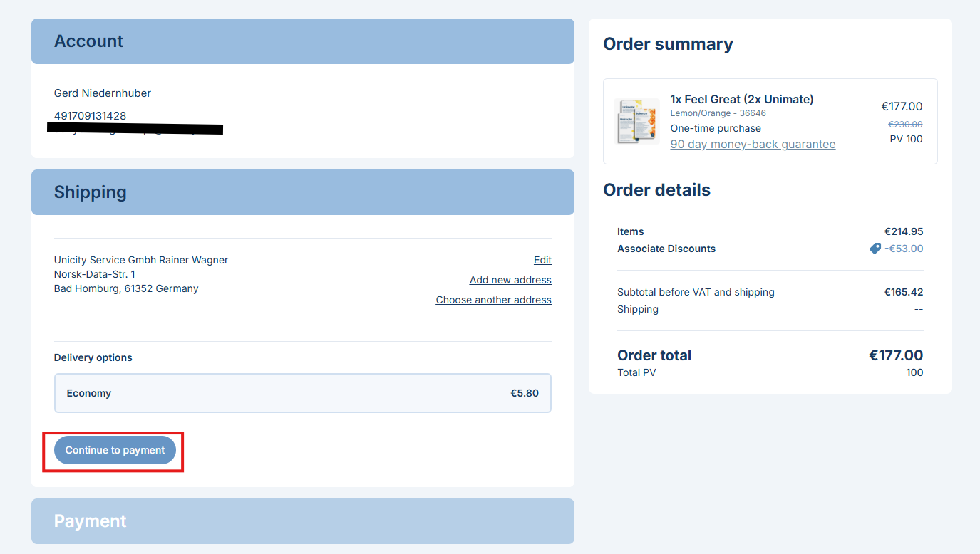 Once on the Checkout Page, edit your shipping details if needed, select the delivery option you would like to use, and then click on “Continue to payment.”